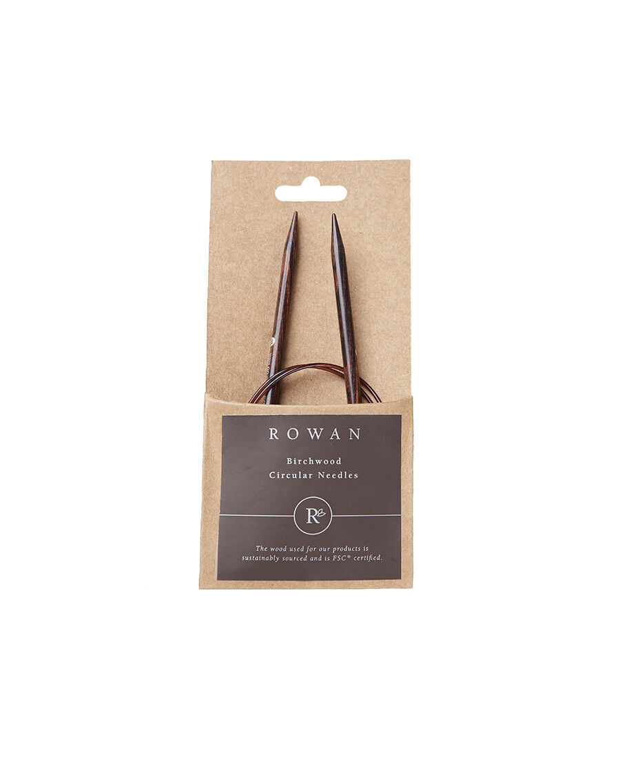 Our Rowan circular needles are manufactured from FSC-certified birchwood sourced from sustainable forests, and feature a lacquered lead-free brass connector between the cable and the needle shaft. The laminated, densified birchwood used for Rowan needles wears exceptionally well over time and allows for a faster speed when knitting. Available in a variety of sizes from 2.5mm up to 12 mm, the needles come in an 80cm length (including tips) and feature the mm/US needles sizes size and the Rowan logo printed on the shaft.